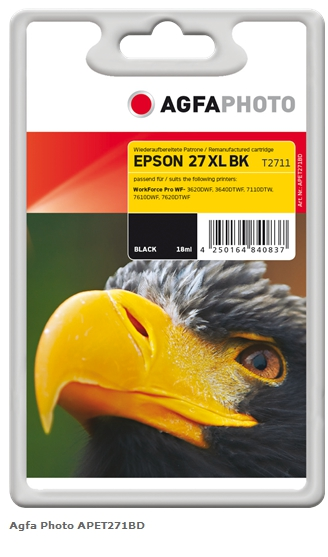 Agfa Photo Cartucho de tinta negro APET271BD ~1100 Páginas 18ml Agfa Photo C13T27114010 (T2711)