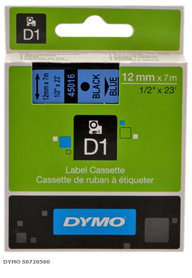 DYMO Cinta mecanográfico negro sobre azul S0720560 45016 12mm x 7m, estándard-D1-Cinta