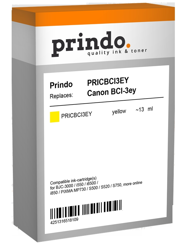 Prindo Cartucho de tinta amarillo PRICBCI3EY, 13ml